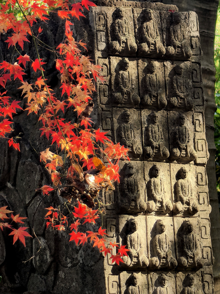 石雕枫韵:古佛红枫照千年